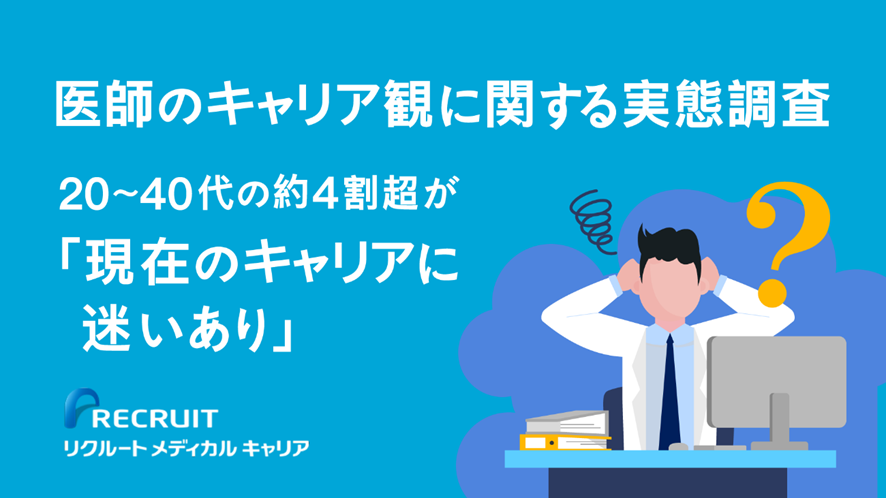 株式会社リクルートメディカルキャリア(本社:東京都千代田区、代表取締役:髙﨑 透、以下リクルートメディカルキャリア)は、医師のキャリア観に関する調査を実施しました。本リリースでは、医師免許取得時の理想像から現在の納得感、初めてキャリアを見直した時期とその理由、そしてキャリア選択で重視する点までを幅広く分析し、年代ごとの特徴を明らかにしました。